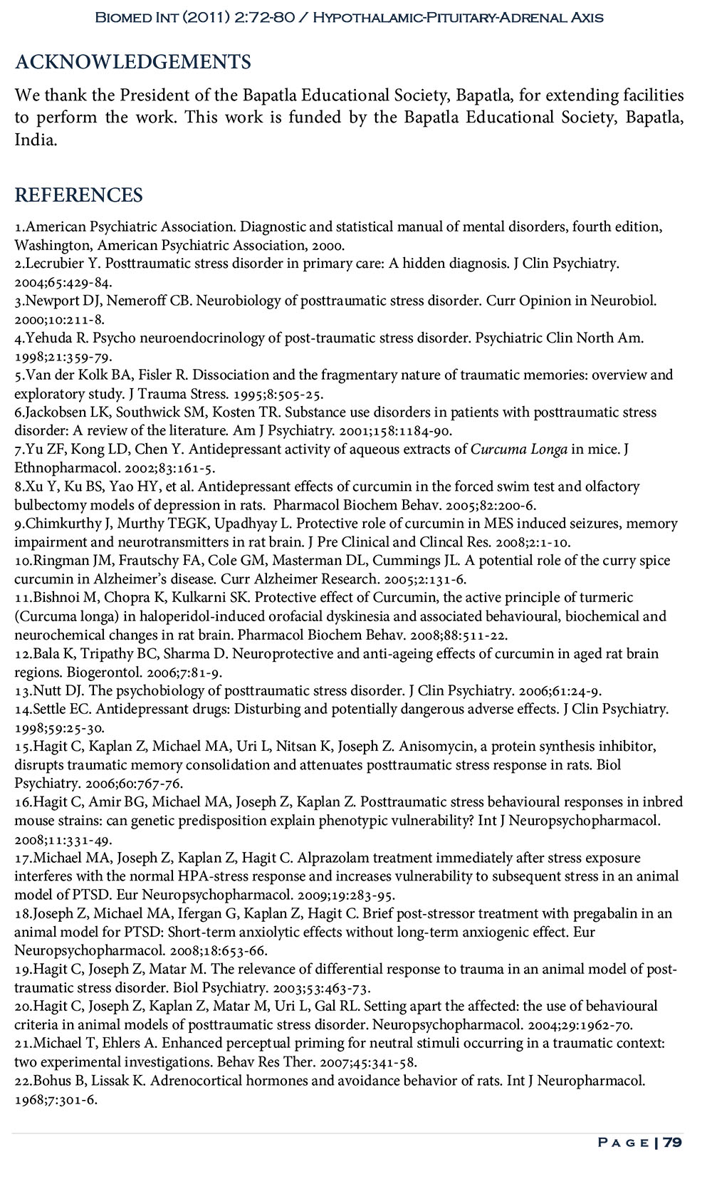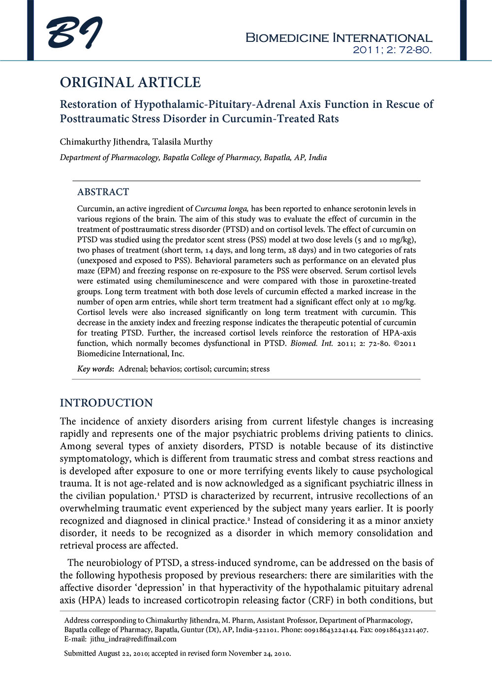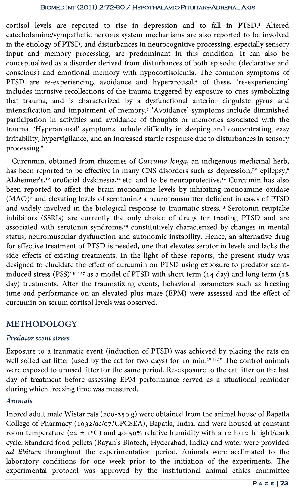 Restoration of Hypothalamic-Pituitary-Adrenal Axis Function in Rescue of Posttraumatic Stress Disorder in Curcumin-Treated Rats